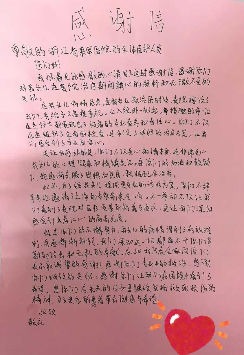 更讓我感動(dòng)的是,你們不僅關(guān)心病情本身,還非常關(guān)心我女兒的心理健康和情緒變化。在你們的加油和鼓勵(lì)下,她逐漸克服了恐懼和焦慮,積極配合治療。