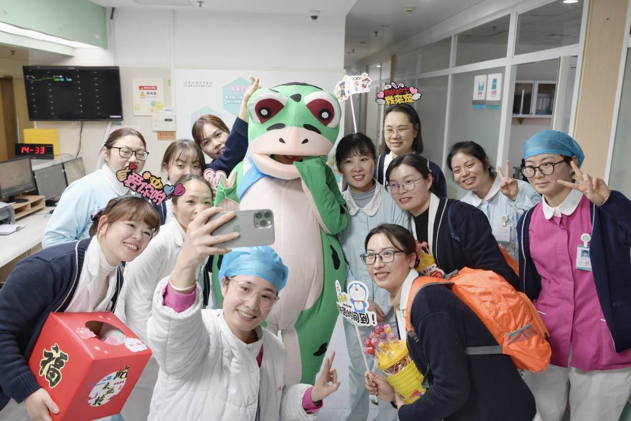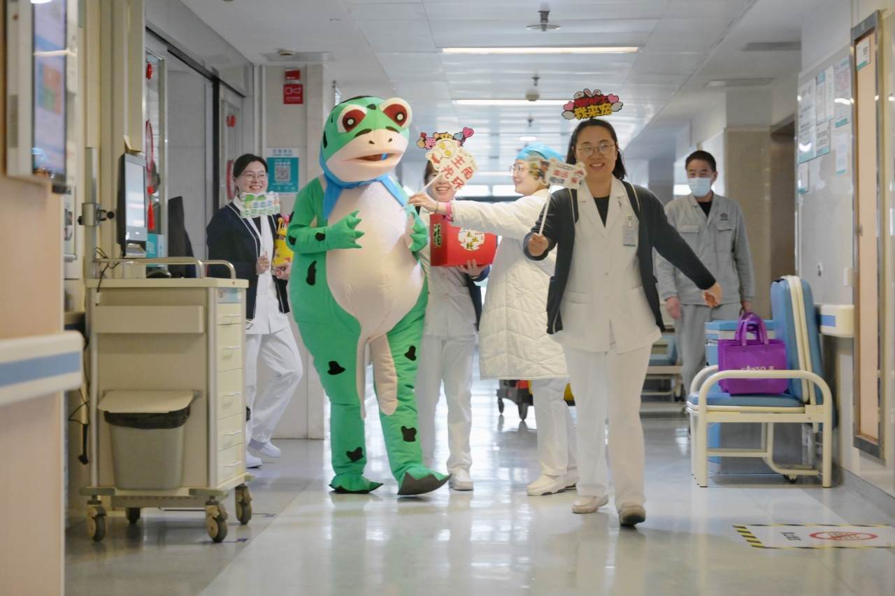 護理人文學(xué)組的“我的護士 我來寵”在各個診區(qū)溫情啟動,“青蛙王子”與活動組織人員為辛勤工作的護士們帶來驚喜抽獎和暖心祝福。