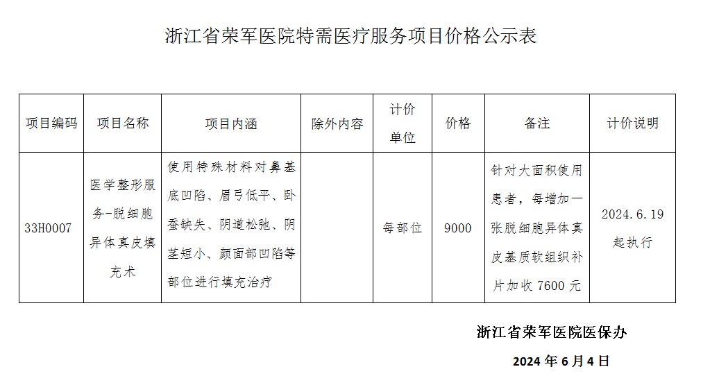 浙江省榮軍醫(yī)院特需醫(yī)療服務(wù)項(xiàng)目?jī)r(jià)格公示(醫(yī)學(xué)整形服務(wù))
