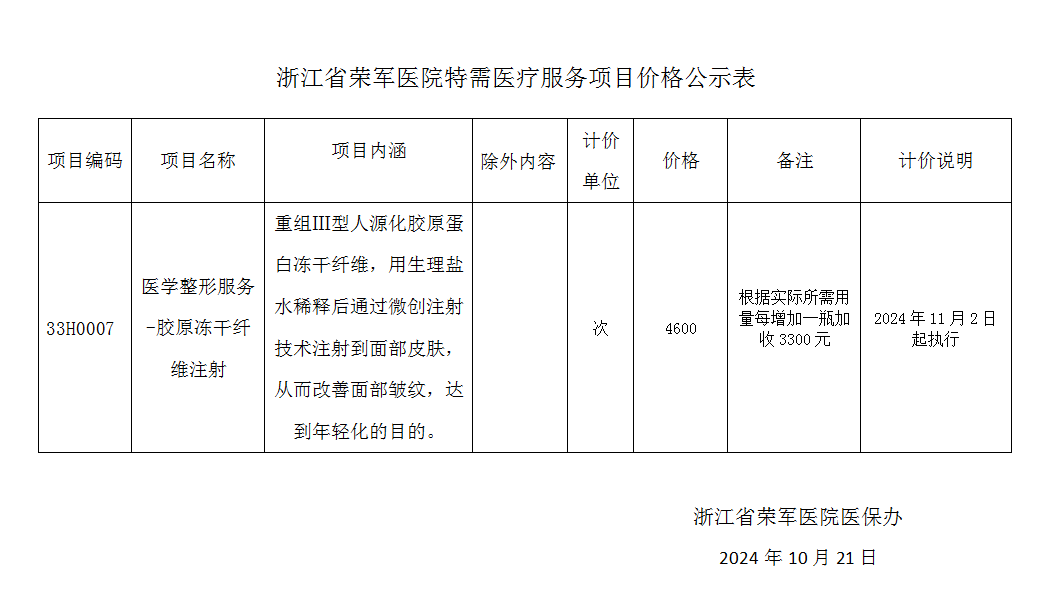浙江省榮軍醫(yī)院特需醫(yī)療服務(wù)項(xiàng)目價(jià)格公示(醫(yī)學(xué)整形服務(wù))
