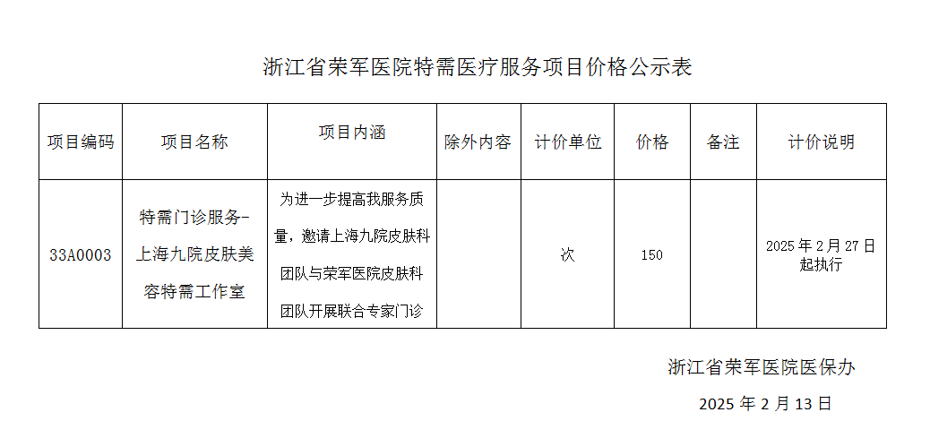 浙江省榮軍醫(yī)院特需醫(yī)療服務(wù)項目價格公示(特需門診服務(wù))
