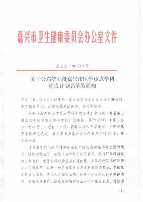佳報(bào)傳來,嘉興市衛(wèi)生健康委員會(huì)公布新一輪嘉興市醫(yī)學(xué)重點(diǎn)學(xué)科建設(shè)計(jì)劃名單,浙江省榮軍醫(yī)院4個(gè)學(xué)科獲評(píng)全市醫(yī)學(xué)重點(diǎn)學(xué)科,其中胸外科學(xué)入選支撐學(xué)科,骨外科學(xué)、心血管病學(xué)和老年醫(yī)學(xué)入選扶持學(xué)科,標(biāo)志著醫(yī)院學(xué)科建設(shè)和創(chuàng)新發(fā)展邁上新臺(tái)階,為醫(yī)院高質(zhì)量發(fā)展注入新動(dòng)能!