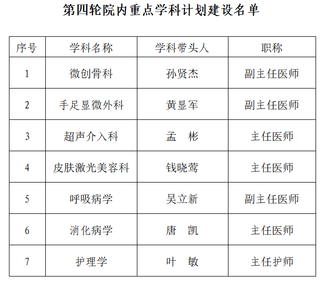 會(huì)議宣布了《關(guān)于公布浙江省榮軍醫(yī)院第四輪院內(nèi)重點(diǎn)學(xué)科建設(shè)計(jì)劃名單及資助經(jīng)費(fèi)的通知》文件,確定微創(chuàng)骨科、手足顯微外科、超聲介入科、皮膚激光美容科、呼吸病學(xué)、消化病學(xué)、護(hù)理學(xué)7個(gè)學(xué)科為醫(yī)院第四輪院內(nèi)重點(diǎn)學(xué)科。