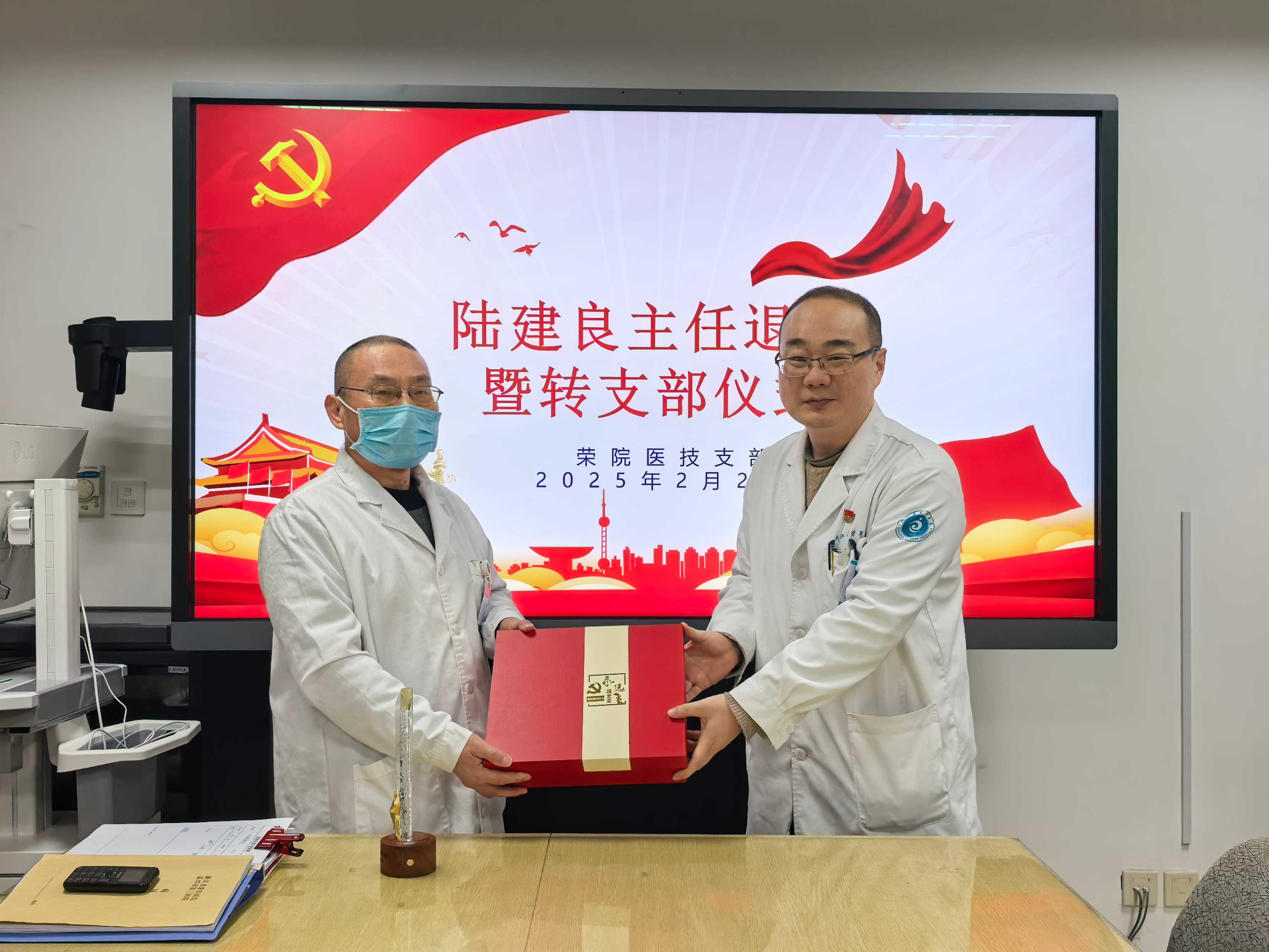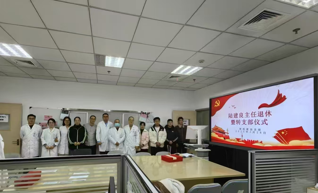 2月28日,醫(yī)技黨支部在放射科閱片室為陸建良主任舉行退休暨轉(zhuǎn)支部儀式,致敬陸主任四十載醫(yī)者仁心的堅守。支部同志、科室同仁及青年團員代表共同見證這一溫情時刻。